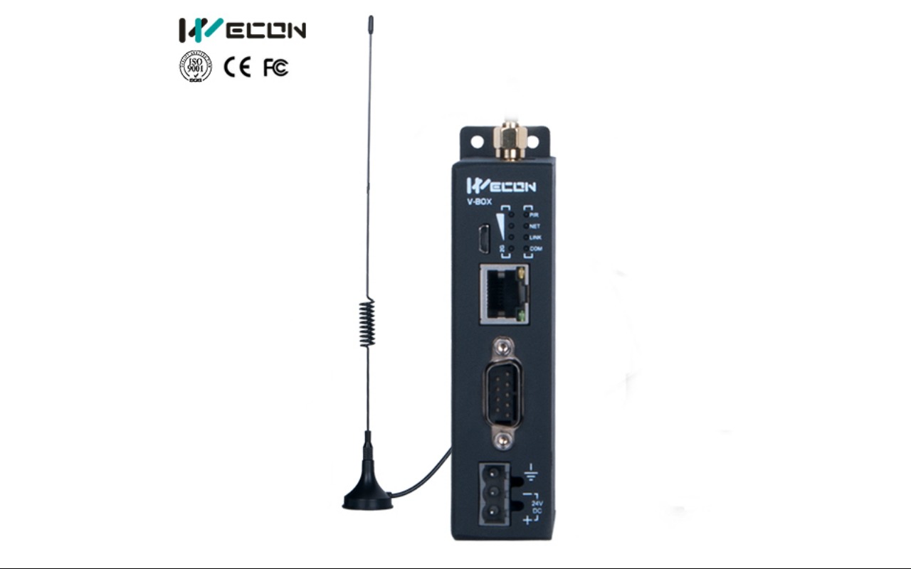 The WECON V-BOX is an intelligent industrial IoT gateway designed for remote monitoring, data logging, and cloud connectivity. It connects PLCs and industrial equipment to the V-NET cloud platform via Ethernet, Wi-Fi, or 4G, supporting over 300 PLC brands. Key features include remote debugging, Modbus TCP/RTU, WVPN, and, in the H-series, 3 Ethernet ports and 2 DI/DO ports.