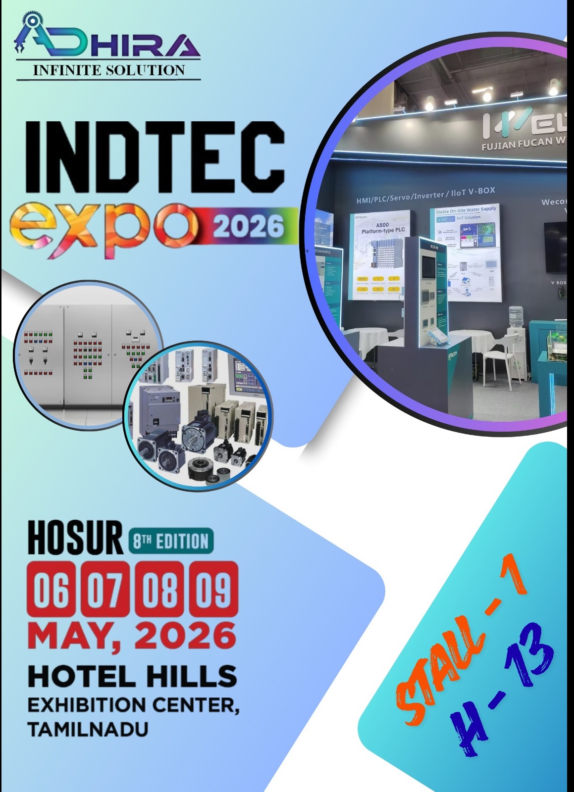 The INDTECH EXPO 2026 (8th Edition) is scheduled to take place from May 6 to May 9, 2026, at the Hotel Hills Convention Centre in Hosur, Tamil Nadu.
